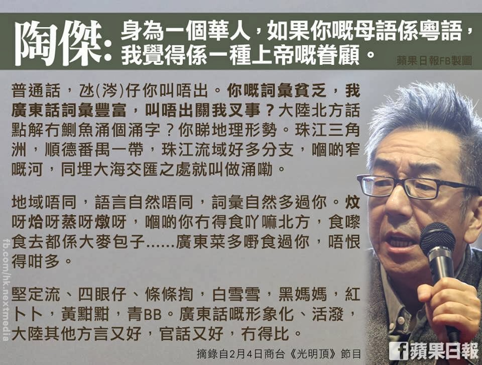 粵語本身就不是方言,如果你有參照歷史文獻,粵語才是最能傳承漢文化的語言。