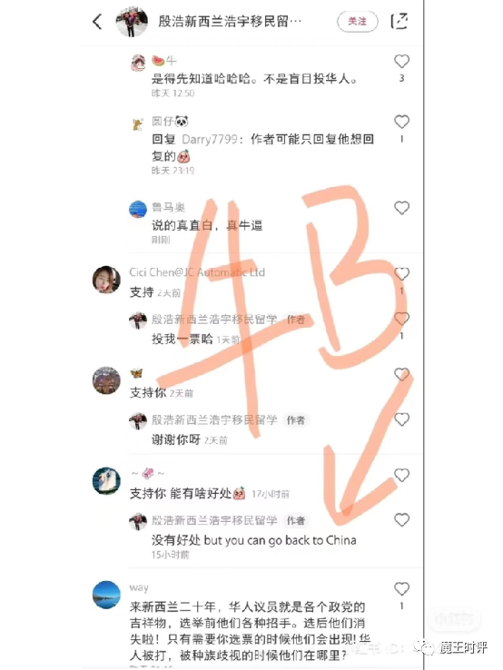 近来奥克兰华人微信小红书都在疯传,奥克兰区议员候选人殷浩(Howie Yin)在竞选期间言论失当,陷入了公关危机。网传殷浩在社交媒体上回应网友提问“支持你能有啥好处?”时,说:“没有好处,but you can go back to China(但是你可以滚回中国)”,震惊华社。