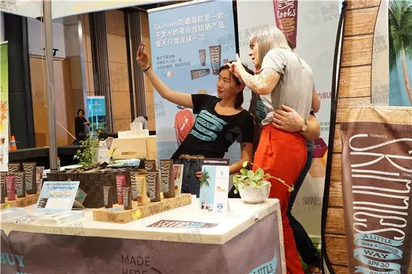 (参展品牌在自己的摊位前自拍留念)
